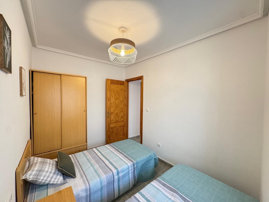 Wij presenteren aan de Costa Blanca Alicante een appartement op 100 meter van Playa Los Locos met een gemeenschappelijk zwembad. Het is gelegen op de vijfde verdieping met lift en heeft 2 slaapkamers en een badkamer! Verder een terras en airco! Op loopafstand van het strand en het centrum van Torrevieja! Dichtbij bars, restaurants en een supermarkt!
