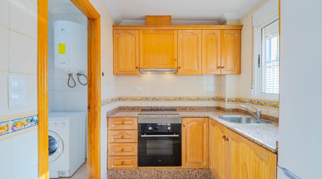 Aan de Costa Blanca Alicante presenteren wij een herenhuis in Royal Park Los Altos Punta Prima met 2 slaapkamers, een complete badkamer, een ingerichte keuken, een terras en een tuin! Dichtbij bars, restaurants en een supermarkt! Slechts 10 minuten met de auto naar de stad Torrevieja en het winkelcentrum La Zenia! Op loopafstand van het strand!