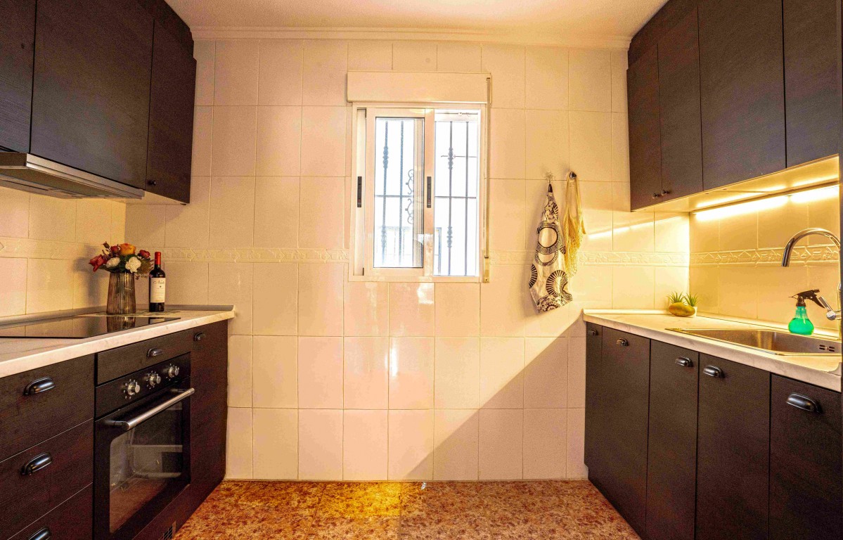 We present at the Costa Blanca Alicante a upstairs Bungalow in Los Altos Orihuela Costa! It has 2 bedrooms and a bathroom! There is a large roof terrace, over 30 m2, with a large storage room and fantastic views of the mountains. In the living room there is a private balcony.The kitchen is new dishwasher and a new large water heater! There is airco in the livingroom and in the bedroom a ceiling fan! The exterior of the house is freshly painted! Only 5 min with the car from the comerial center La Zenia Boulevard! Walking distance to bars,restaurants and supermarket! The comunal swimmingpool has new parasols and solar panels will be built for the pool to be able to heat in autumn and spring season!