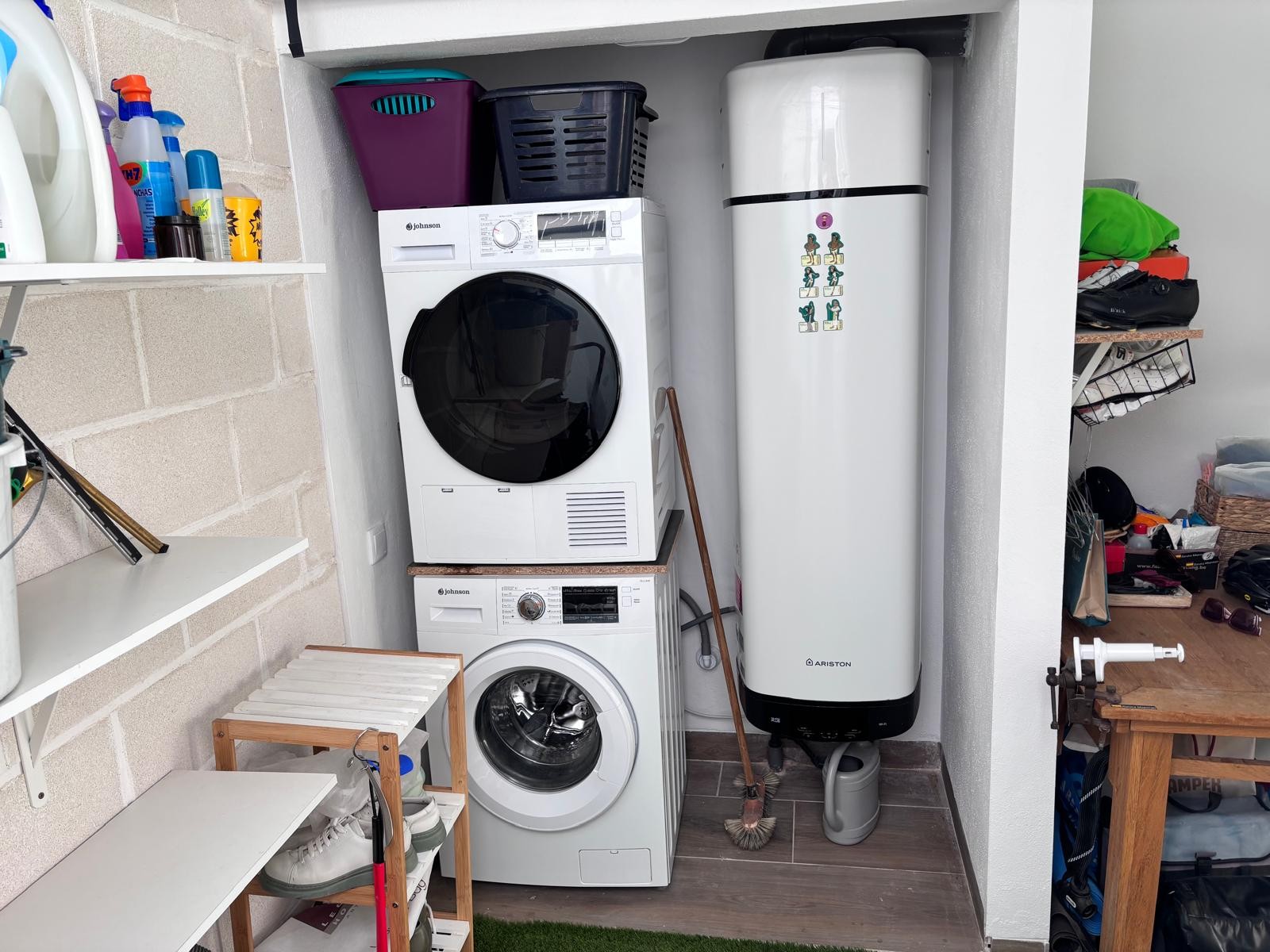 Step into this delightful southwest-facing quad villa, where comfort, light, and easy living come together in perfect harmony. Offering 2 well-proportioned bedrooms, 2 bathrooms, and an additional guest WC, this home has been thoughtfully designed to suit both permanent living and relaxing holiday escapes. At the heart of the property, a generous and light-filled living room invites you to unwind, with an effortless flow into the open-plan kitchenfully equipped with white goodscreating a sociable and welcoming space ideal for entertaining family and friends. Large openings allow natural sunlight to pour in throughout the day, enhancing the warm and inviting atmosphere. Outside, the villa continues to impress. The private plot features convenient off-road parking with a carport, along with a useful storeroom and a separate utility/washing room, ensuring practicality without compromising on style. The outdoor space offers excellent potential, with ample room to create your own private swimming poolperfect for making the most of the sunny climate. Comfort has been carefully considered, with mosquito nets fitted on all windows and terrace doors, as well as electric blinds that add a modern touch and everyday convenience. Sold partially furnished, this home provides a fantastic opportunity to move straight in while still leaving room to add your own personal style. Whether you're looking for a permanent residence, a holiday getaway, or an investment, this charming villa ticks all the boxes.
